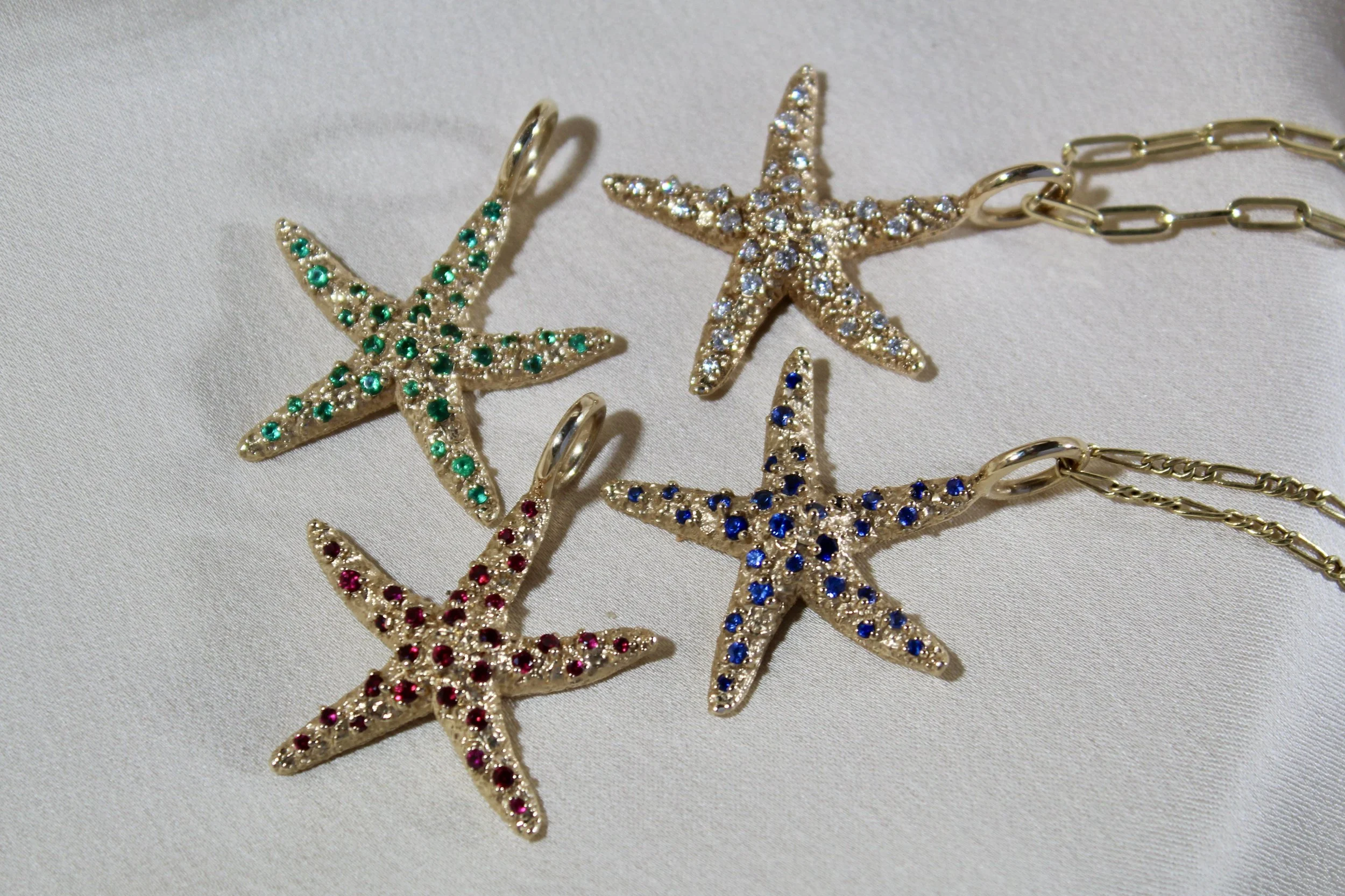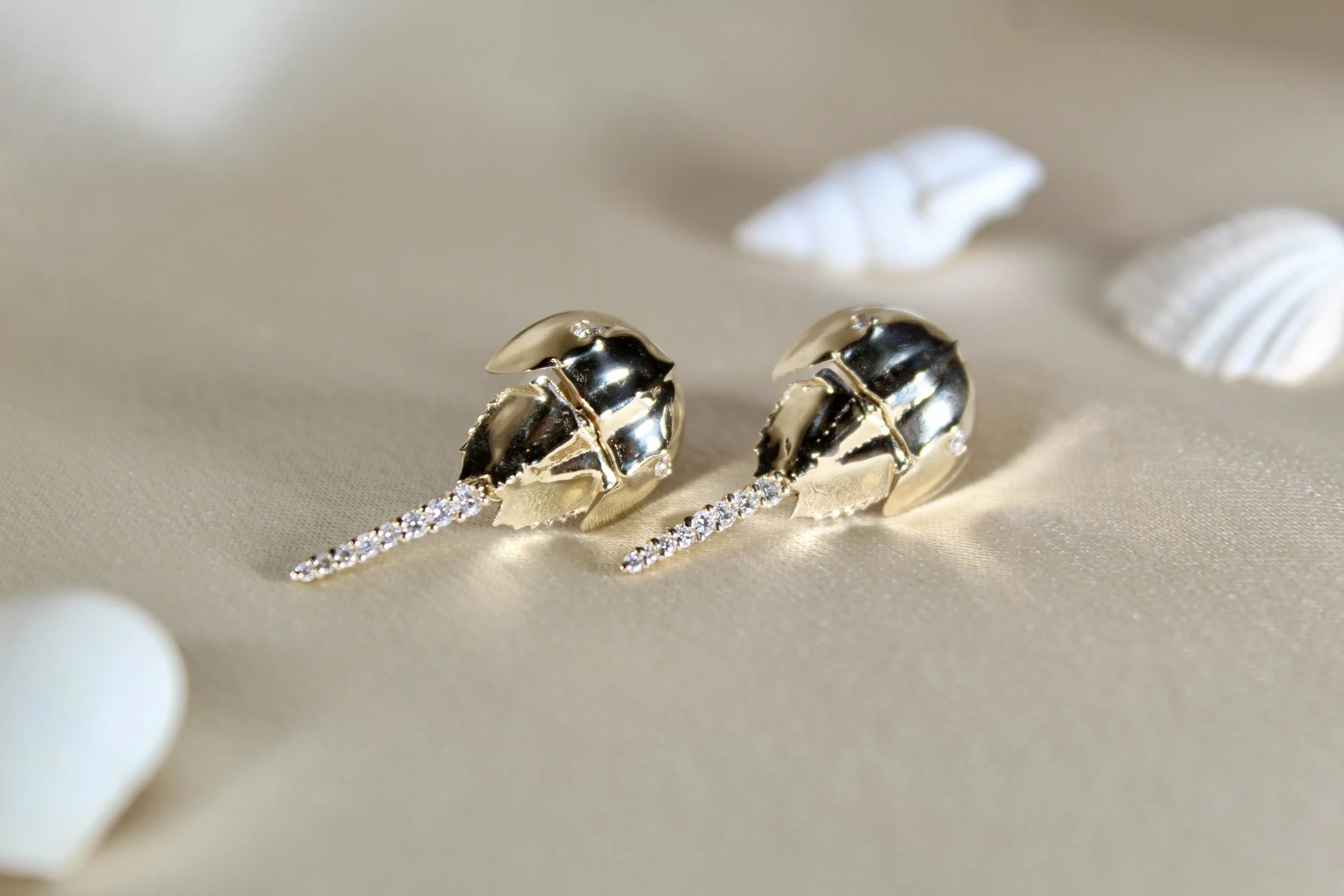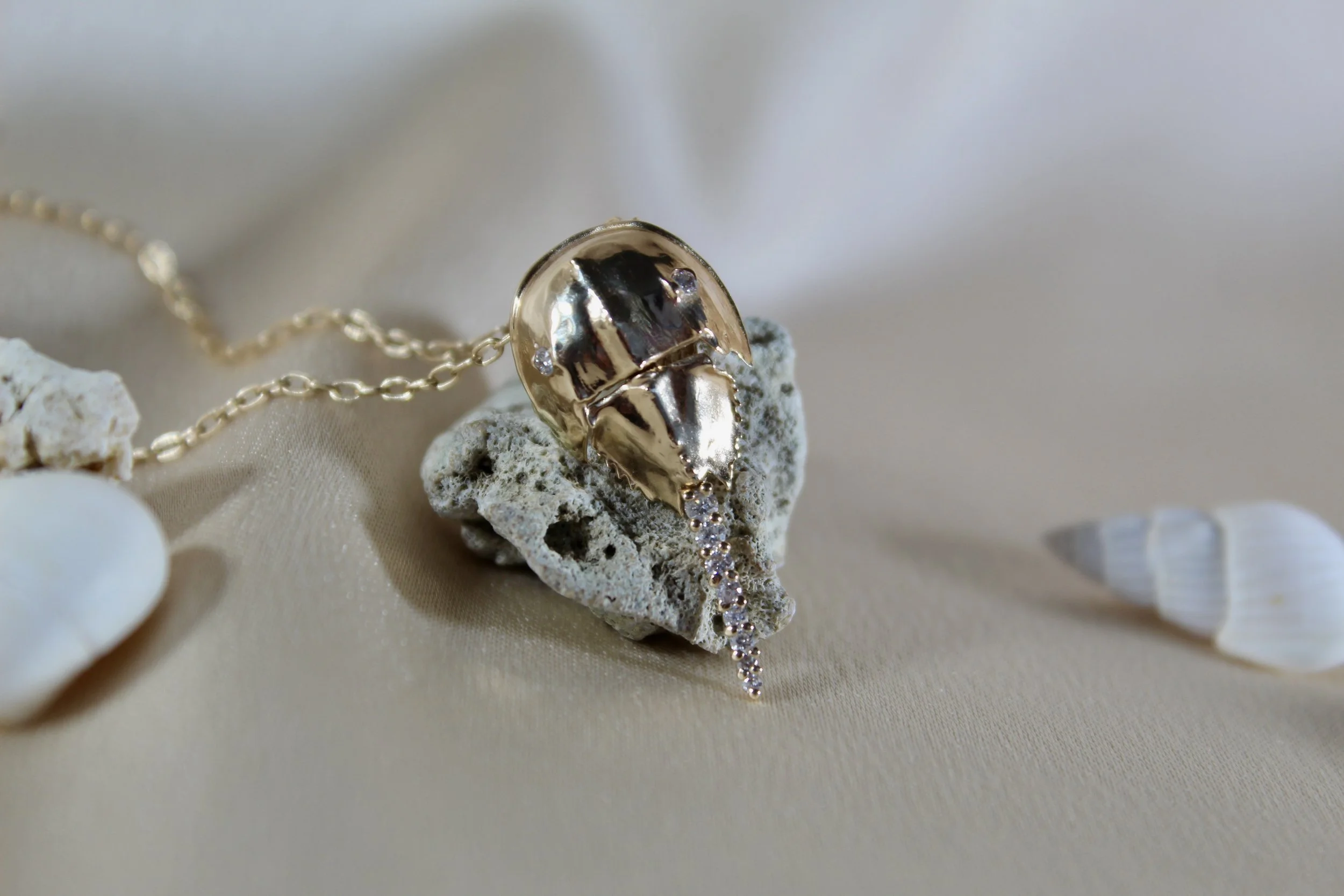 Categories: All Pendants Rings Earrings Paperweights All | Pendants | Rings | Earrings | Paperweights | Calico Crab Paperweight from $1,200.00 Skate Egg Case Pendant - Small from $300.00 Starfish Ring $3,250.00 Sand Dollar Earrings from $300.00 Lucky Shell Pendant from $800.00 Seahorse Pendant from $750.00 Oyster Shell Pendants $1,000.00 Two-Sided Sand Dollar Pendant from $900.00 Peppered Starfish Pendant $3,000.00 Starfish Pendant from $125.00 Horseshoe Crab Pendant - Small 14k $1,250.00 Horseshoe Crab Pendant - Large from $650.00 Skate Egg Case Pendant - Large from $1,500.00 Emerald-Cut Blue Topaz Earrings $2,000.00 Cabochon Amethyst Earrings $2,000.00 Emerald-Cut Morganite Earrings $2,000.00 Custom Gem Earrings $2,000.00 Starfish Earrings in 14k Gold $750.00 Horseshoe Crab Earrings in 14k Gold and Diamonds $2,800.00 Mexican Clam Shell Earrings $900.00 Sea Urchin Earrings $3,500.00 Sea Urchin Ring $1,800.00 London Blue Topaz and Orange Garnet Ring $2,700.00 Burmese Peridot and Pink Tourmaline Ring $3,200.00 Custom Three-Stone Ring from $3,000.00 Custom Titanium Ring $5,000.00 Moon Shell Paperweight from $1,200.00 Horseshoe Crab Paperweight from $1,200.00 Round Sand Dollar Paperweight from $1,000.00 Starfish Paperweight from $1,200.00 Cormorant Skull Paperweight from $800.00 Sea Urchin Paperweight from $1,200.00 Large Clam Shell Paperweight from $1,500.00