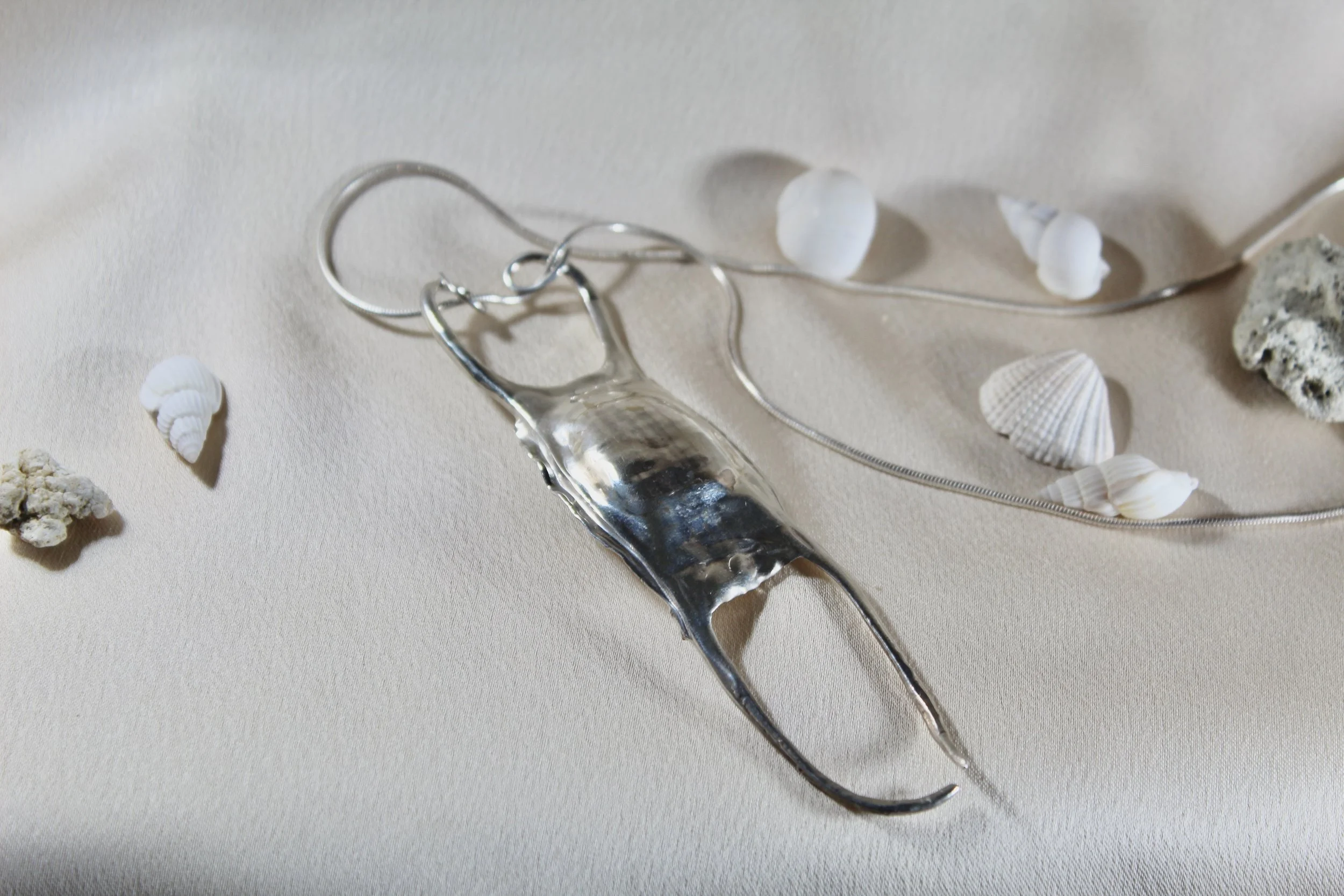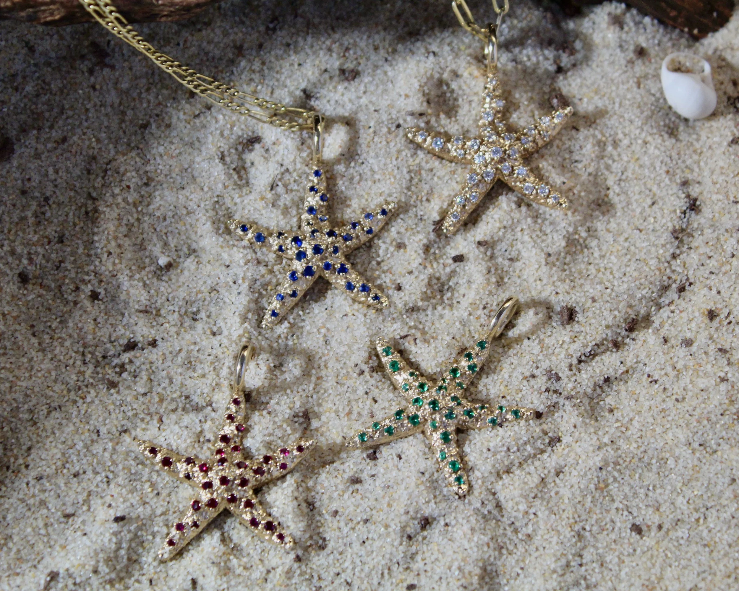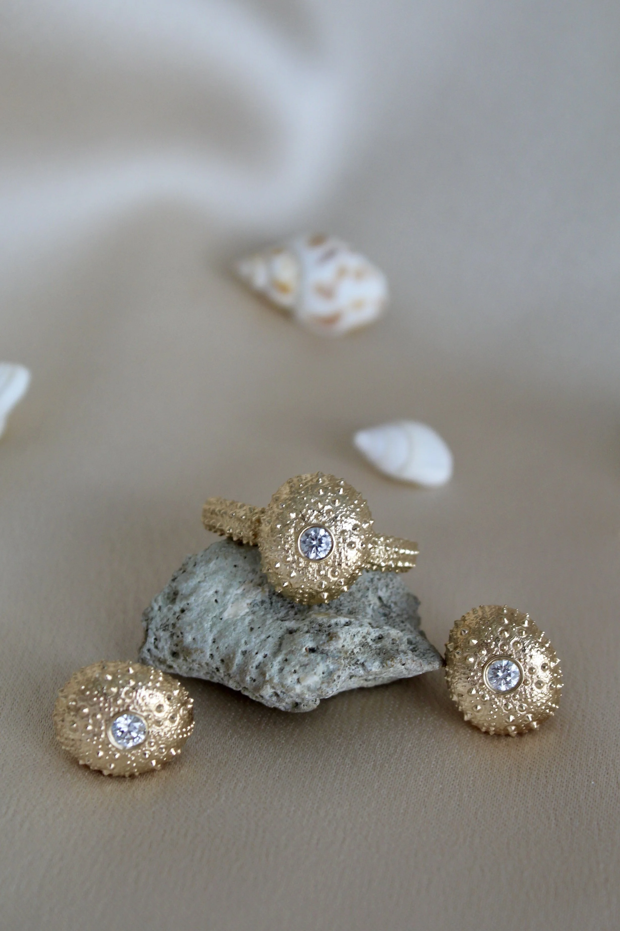 Categories: All Pendants Rings Earrings Paperweights All | Pendants | Rings | Earrings | Paperweights | Calico Crab Paperweight from $1,200.00 Skate Egg Case Pendant - Small from $300.00 Starfish Ring $3,250.00 Sand Dollar Earrings from $300.00 Lucky Shell Pendant from $800.00 Seahorse Pendant from $750.00 Oyster Shell Pendants $1,000.00 Two-Sided Sand Dollar Pendant from $900.00 Peppered Starfish Pendant $3,000.00 Starfish Pendant from $125.00 Horseshoe Crab Pendant - Small 14k $1,250.00 Horseshoe Crab Pendant - Large from $650.00 Skate Egg Case Pendant - Large from $1,500.00 Emerald-Cut Blue Topaz Earrings $2,000.00 Cabochon Amethyst Earrings $2,000.00 Emerald-Cut Morganite Earrings $2,000.00 Custom Gem Earrings $2,000.00 Starfish Earrings in 14k Gold $750.00 Horseshoe Crab Earrings in 14k Gold and Diamonds $2,800.00 Mexican Clam Shell Earrings $900.00 Sea Urchin Earrings $3,500.00 Sea Urchin Ring $1,800.00 London Blue Topaz and Orange Garnet Ring $2,700.00 Burmese Peridot and Pink Tourmaline Ring $3,200.00 Custom Three-Stone Ring from $3,000.00 Custom Titanium Ring $5,000.00 Moon Shell Paperweight from $1,200.00 Horseshoe Crab Paperweight from $1,200.00 Round Sand Dollar Paperweight from $1,000.00 Starfish Paperweight from $1,200.00 Cormorant Skull Paperweight from $800.00 Sea Urchin Paperweight from $1,200.00 Large Clam Shell Paperweight from $1,500.00